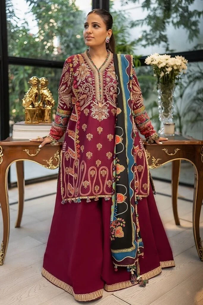 Enjoy a warm sunny morning with new outfits from the Elan Festive Lawn 2026 collection! Now, add to your wardrobe the new lawn fabric collection for Eid 2026 with new Eid patterns for women.All these unsewn 3-piece lawn outfits will help you stand out from the crowd.