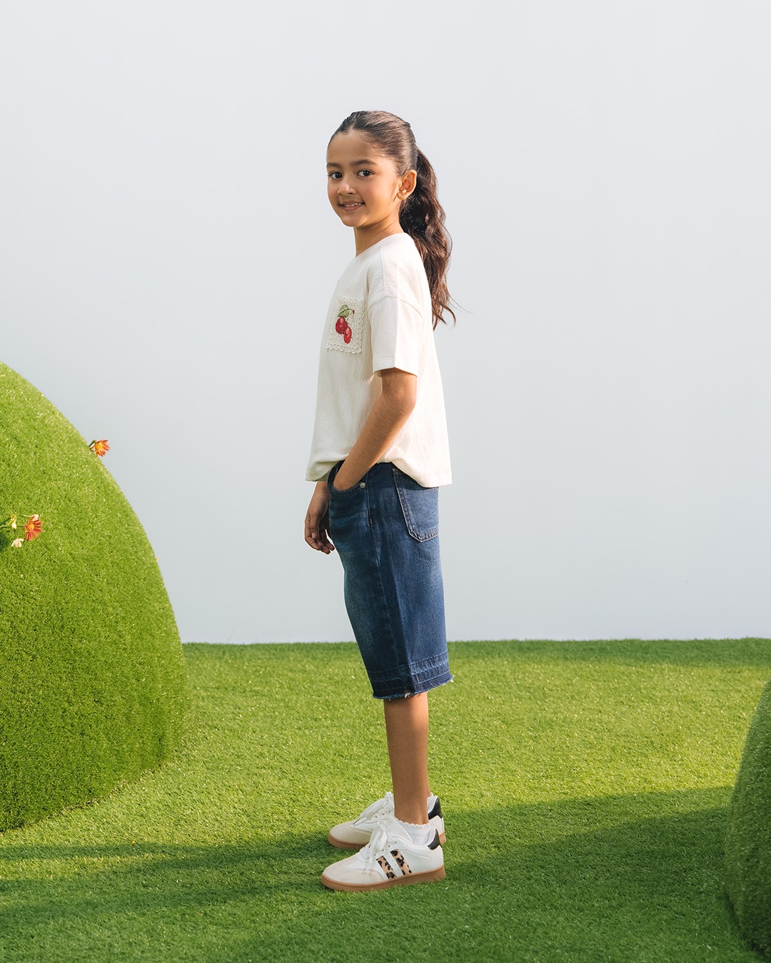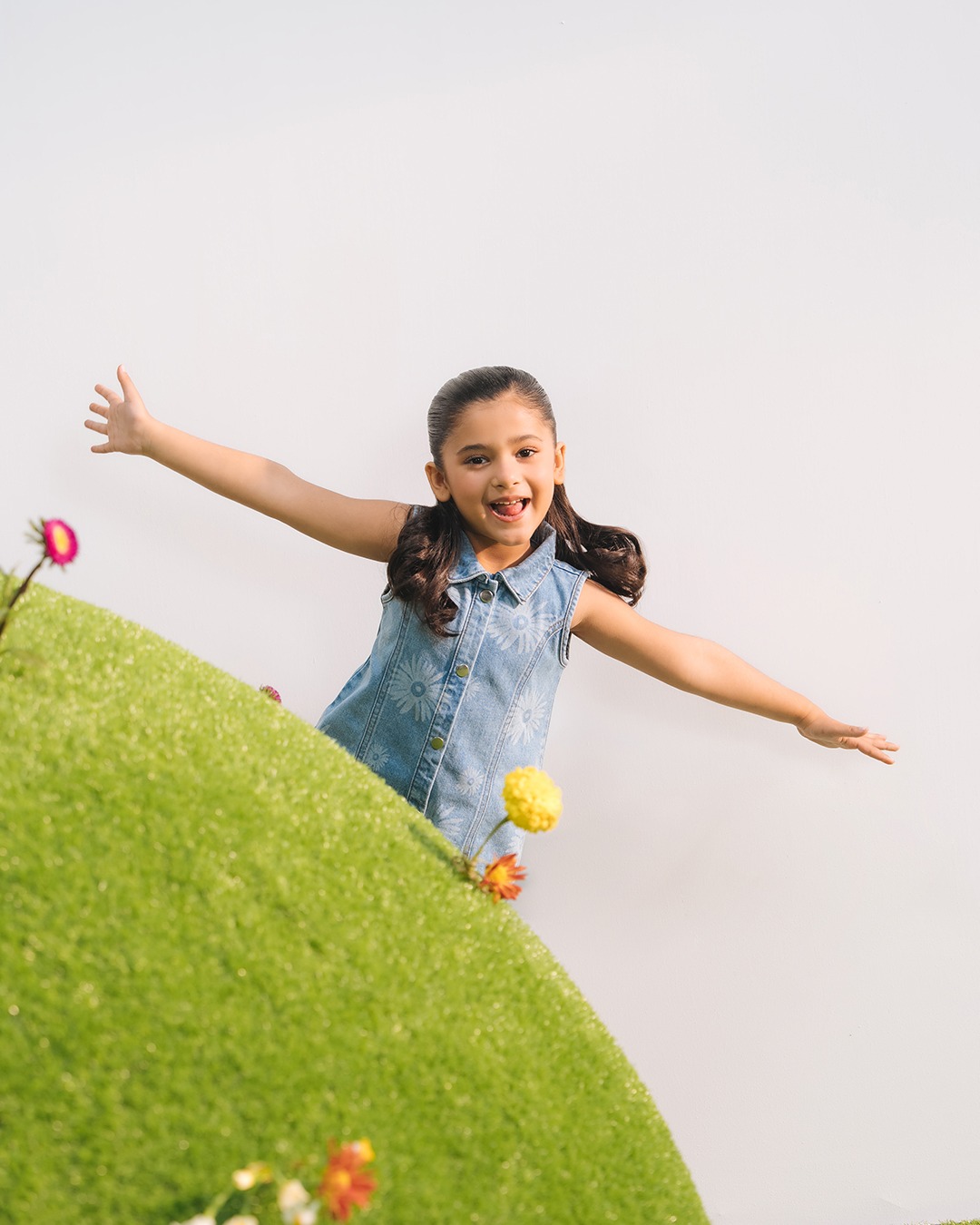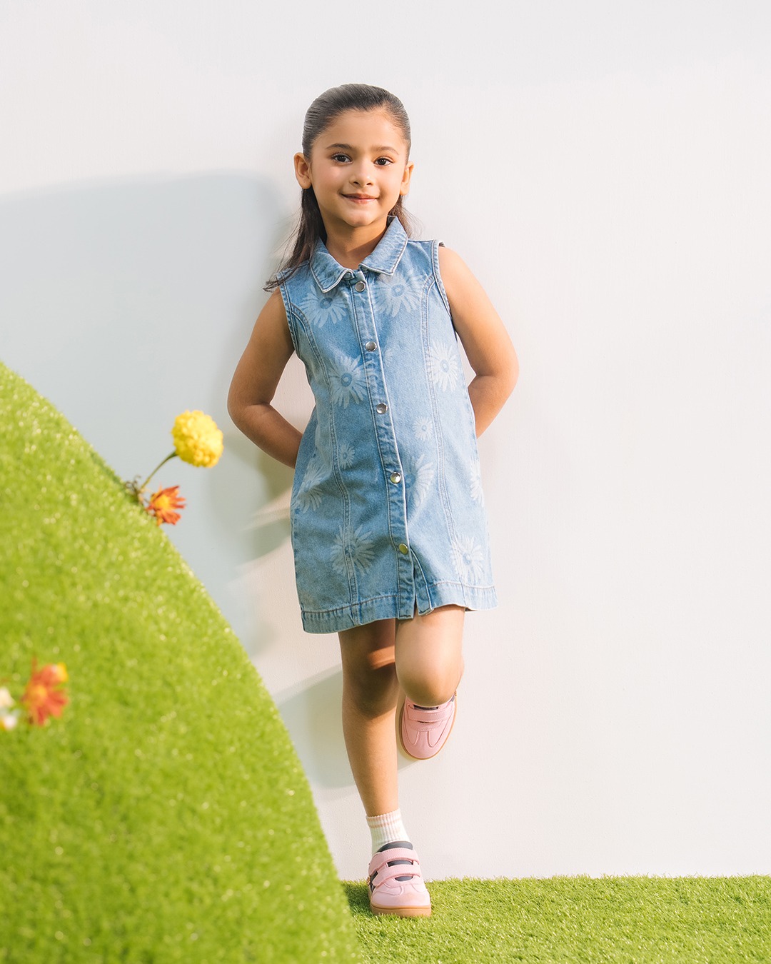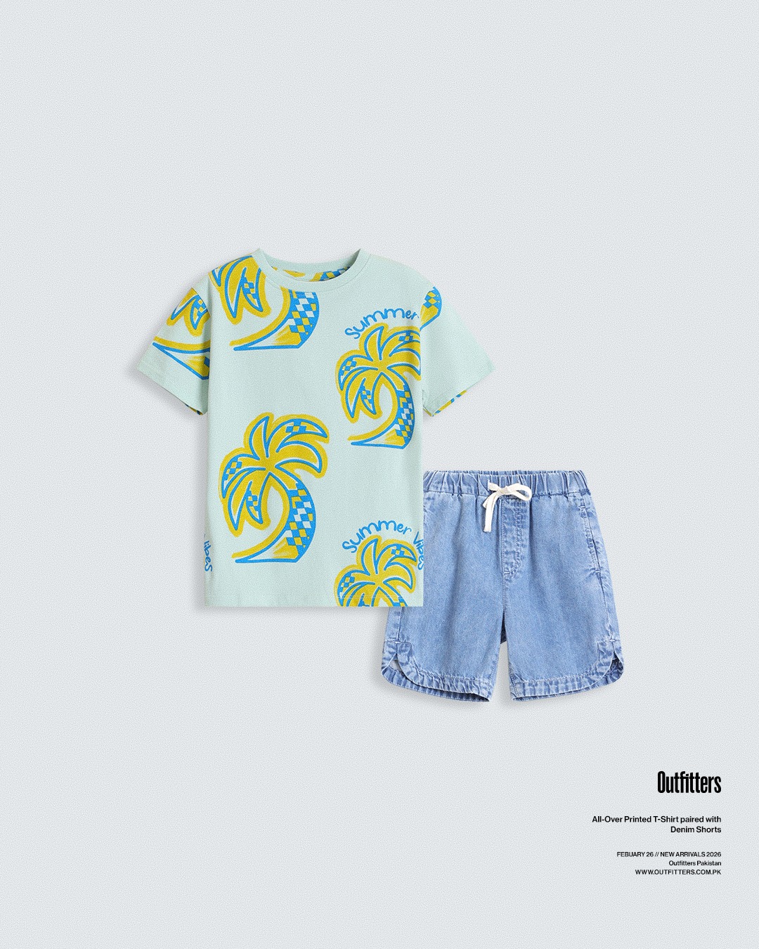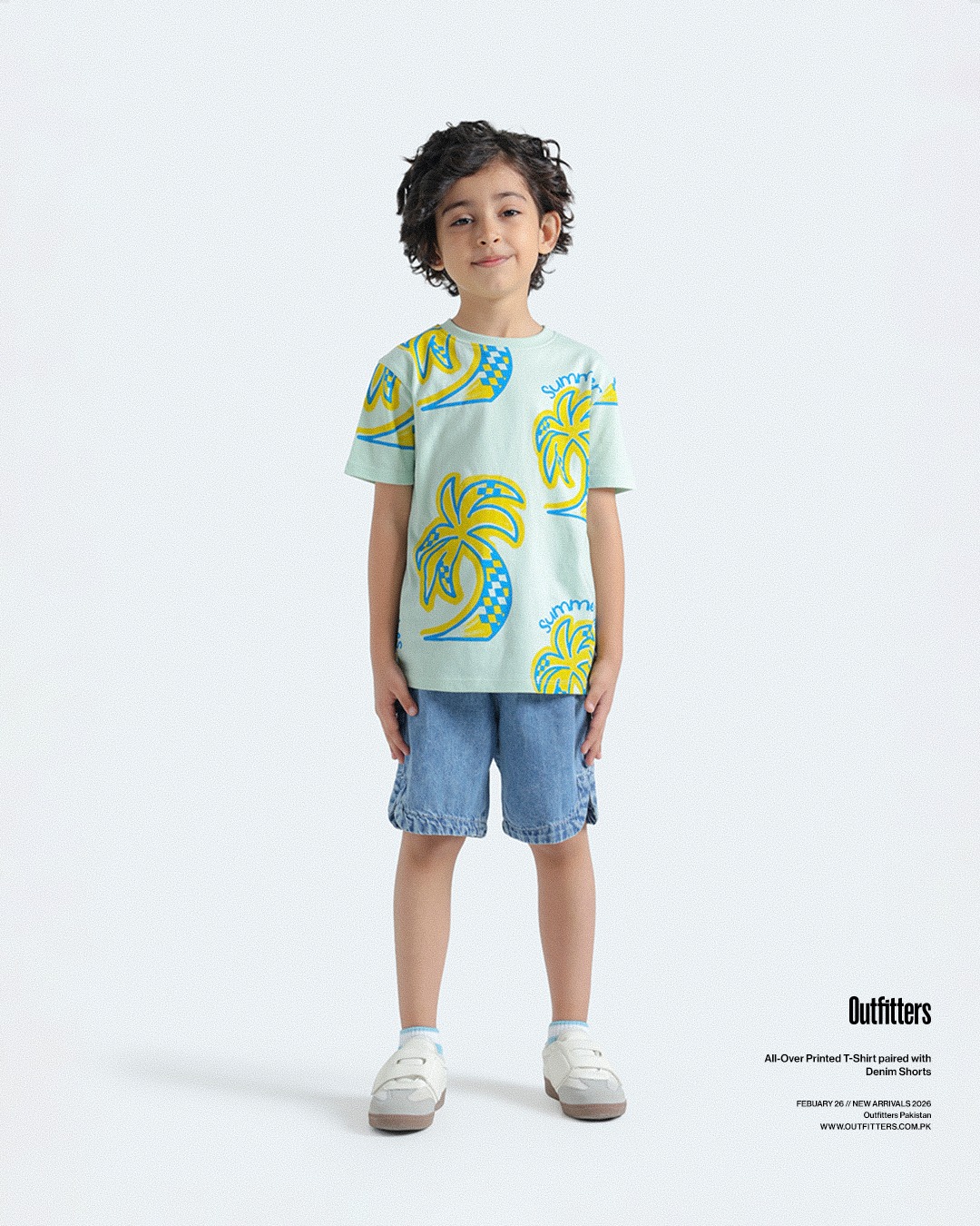 This Spring/Summer 26 season is all about sun-soaked moments and laughter shared with others. Rich blues, crisp whites, and spirited hues meet relaxed silhouettes and effortless form .Outfitters Summer Eid Kids Dresses Spring Looks 2026. a season that looks as bright as it feels—filled with long days, lively moments, and the unmistakable summer style ease. Warm light, fluid movement, and a vibrant palette create an atmosphere of casual gatherings under open skies that combines a new sense of celebration with quiet elegance.